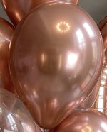 Состав: 2 фольгированные цифры, 2 латексных шара с конфетти, 8 розовое золото хром латексных шара.