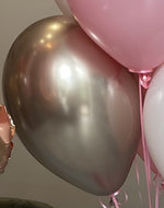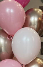 Композиция набора: 1 номер, 6 воздушных шаров розовый хромированный золото, 14 розовых воздушных шаров.